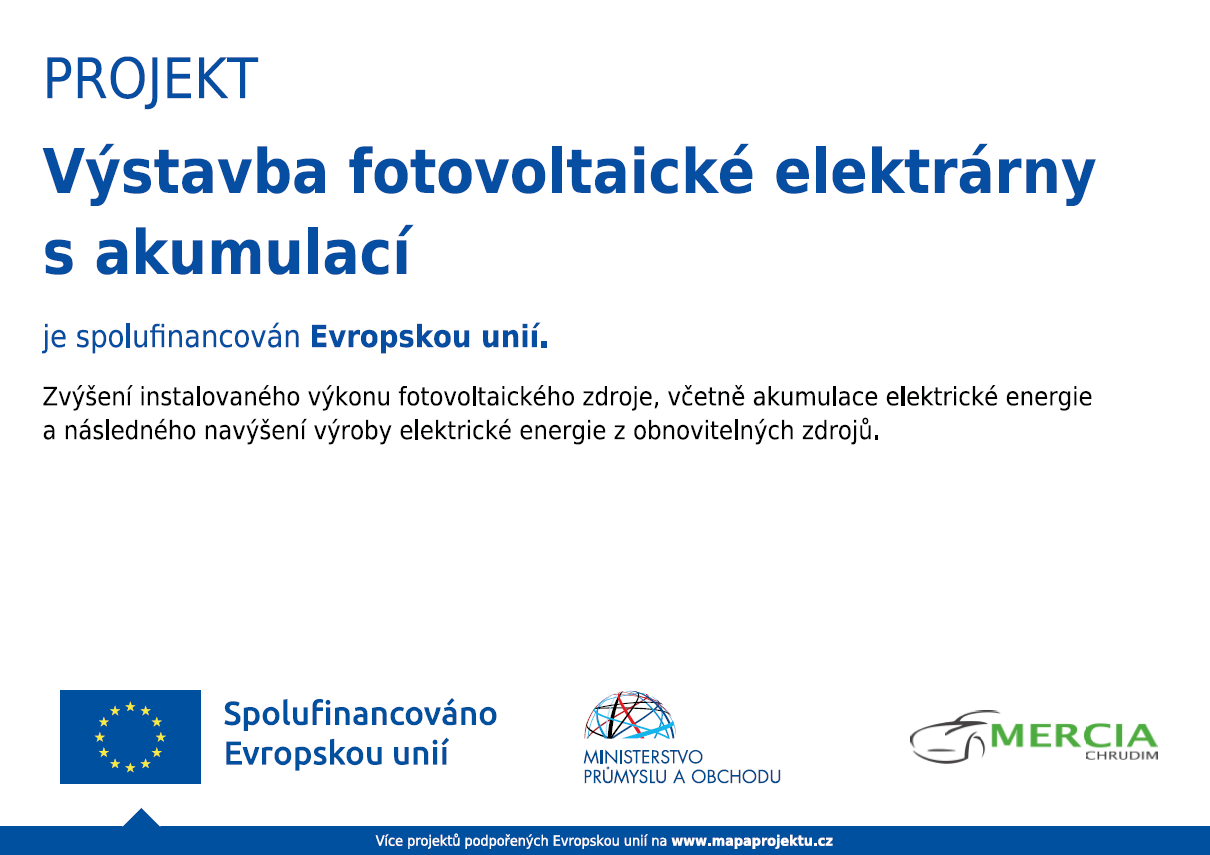 V roce 2025 realizujeme projekt výstavby fotovoltaické elektrárny s akumulací a je spolufinancován Evropskou unií. Cílem projektu je zvýšení instalovaného výkonu fotovoltaického zdroje, včetně akumulace elektrické energie a následného navýšení výroby elektrické energie z obnovitelných zdrojů. Za poslední 2 až 3 roky jsme se intenzivně zabývali sběrem našich interních energetických dat, tak abychom ideálně nadefinovali výrobní kapacity fotovoltaické elektrárny včetně akumulace a maximalizovali využití zelené energie pro naši provozní i servisní činnost a v neposlední řadě pro dobíjení flotily elektromobilů.